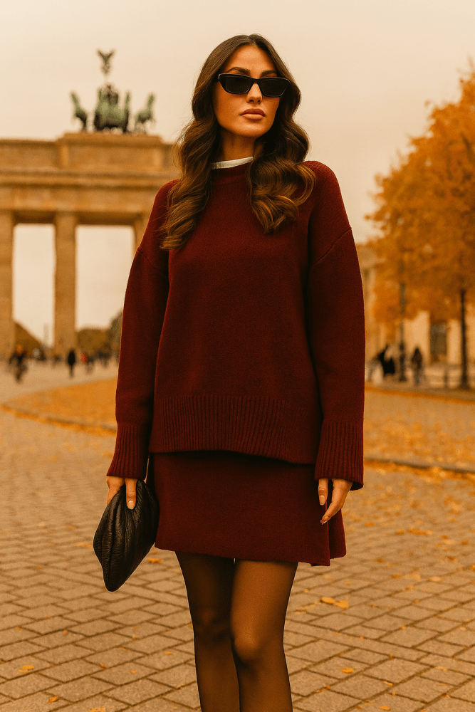 Entdecken Sie das Strick-Set, das Eleganz und Komfort vereint. Aus weichem, warmem Stoff gefertigt, mit bequemem Schnitt und zeitloser Linie, ist dieses Set ein echtes Must-Have für kühlere Tage. Das Sweatshirt mit Rundhalsausschnitt und die dazu passende Hose sorgen für einen raffinierten, aber entspannten Look – perfekt sowohl für entspannte Momente zu Hause als auch für einen Ausflug in die Stadt.